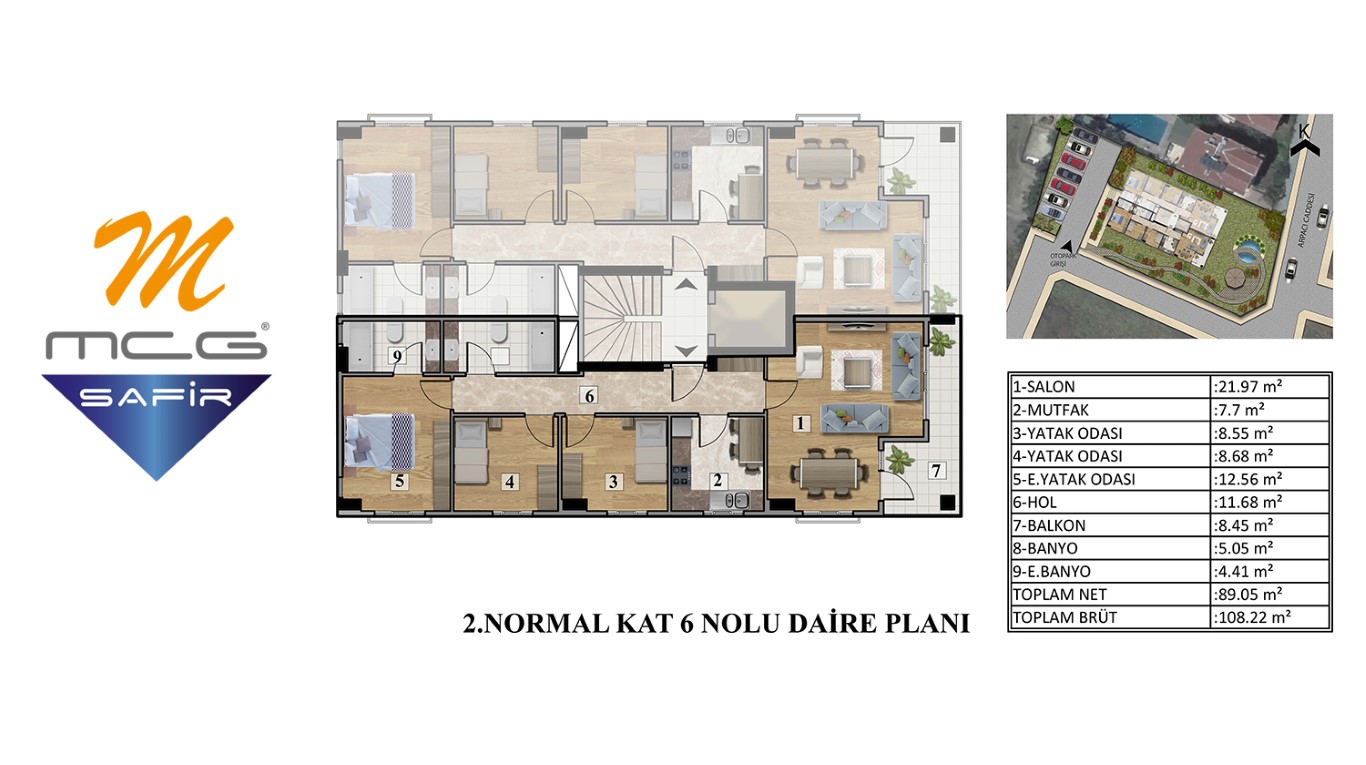 Elevator, Water tank, Generator are offered as standard, and all products in our project, which is carried out with the assurance of mcg construction, comply with TSE standards.